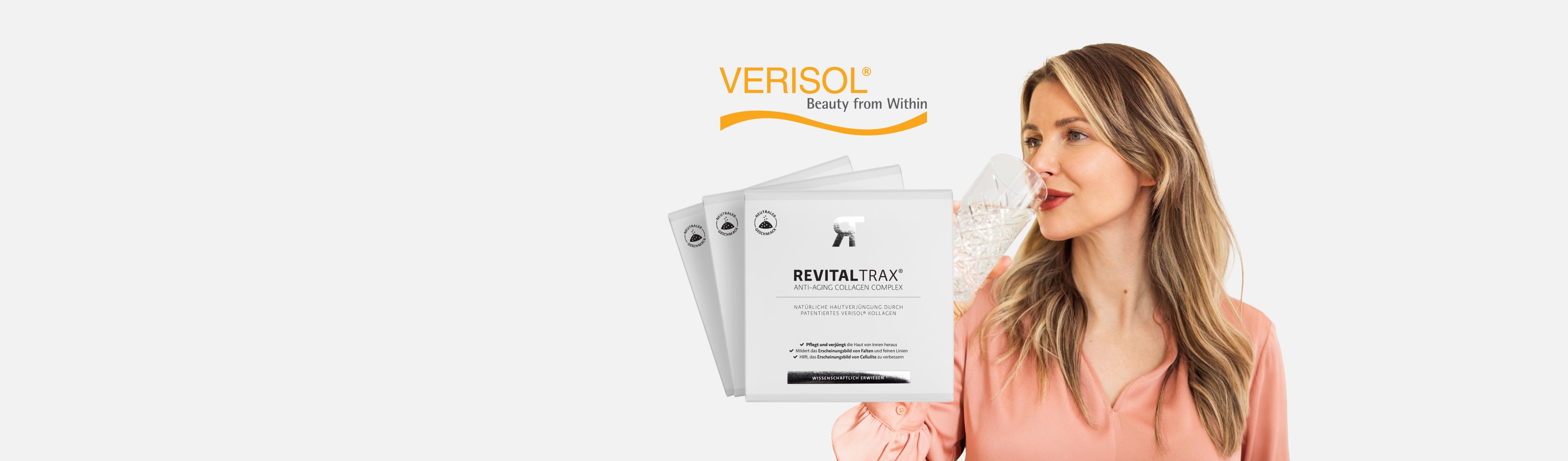 Erfahren Sie, warum unser Collagen Complex mit patentiertem Verisol® bei unseren Kundinnen und Kunden so beliebt ist. Erhältlich in zwei Geschmacksrichtungen: Regular und Zitrone.