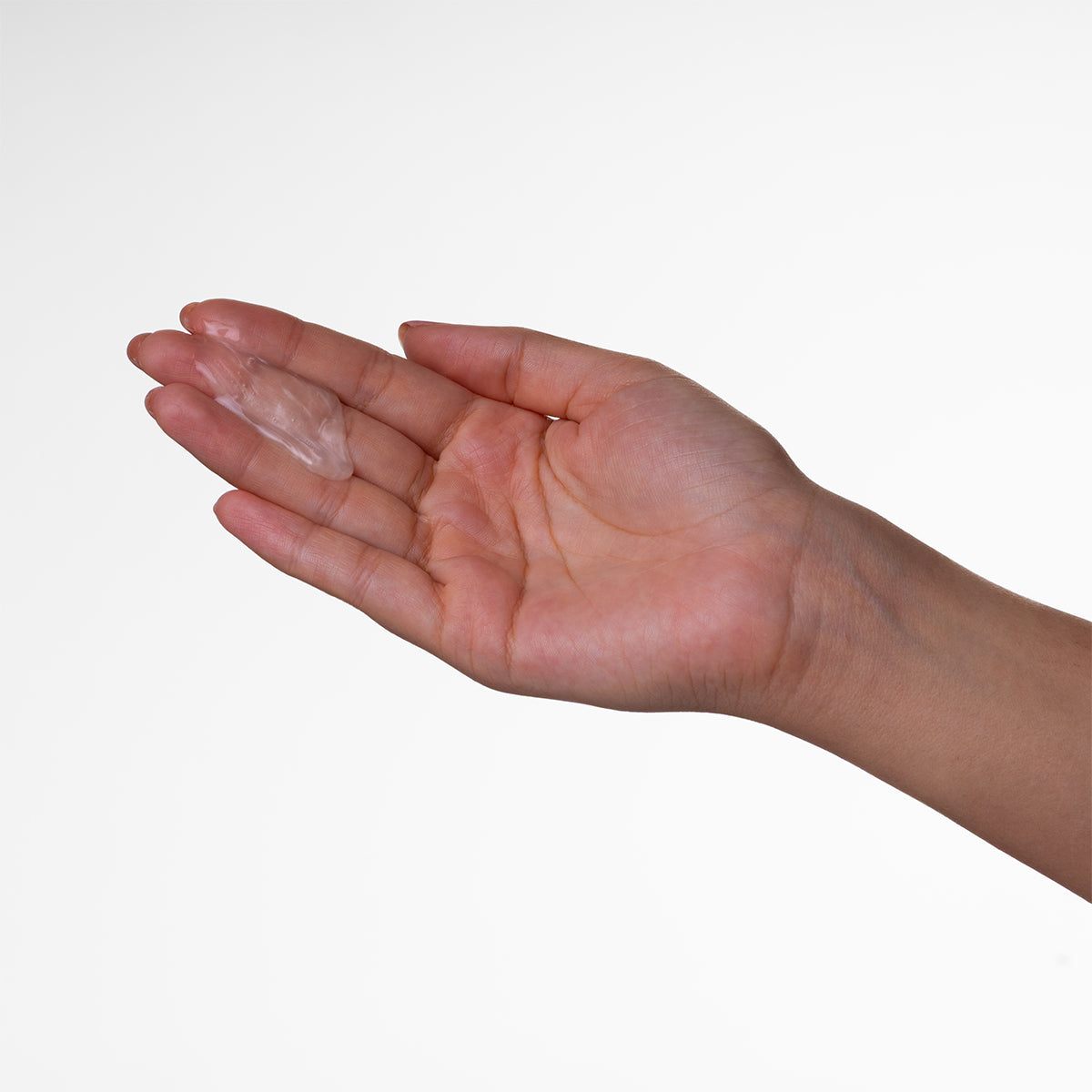 Entleeren Sie eine gefüllte Pipette des Serums auf Ihre Handfläche und verteilen Sie es mit Aufwärtsbewegungen auf Gesicht, Hals und Dekolleté.